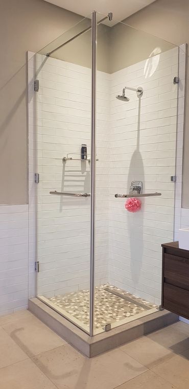 Frameless showers are unique and custom made to suit your specific requirements. Showers can be customized using a variety of high quality hardware.